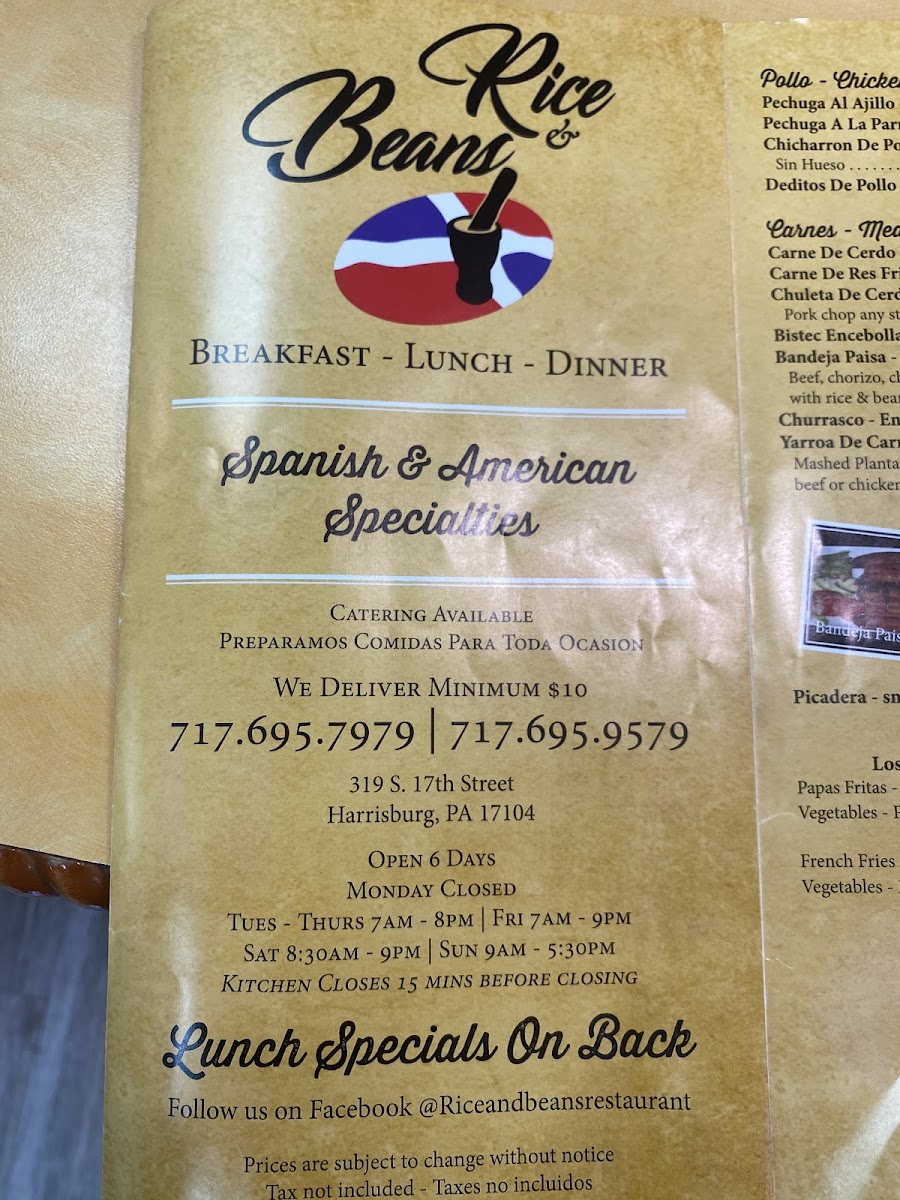 Welcome to Rice & Beans bar and restaurant, located in the heart of Harrisburg, PA. This culinary gem specializes in serving up a delightful array of comfort food that captures the essence of Dominican and Puerto Rican cuisine. Their menu boasts an impressive selection, from Fried Pork (Masita De Cerdo Frita) to Bandeja Paisa, a hearty Colombian platter that embodies flavor and tradition.